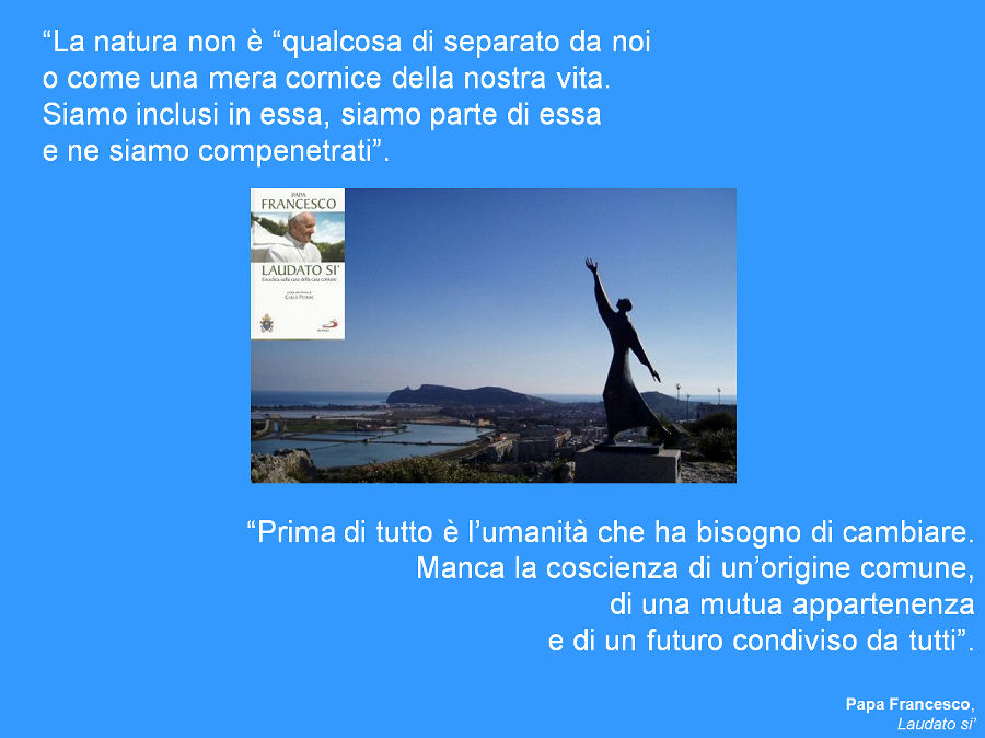 Un gigantesco passo in avanti – realizzato, non a caso, da un “gigante” – nello sviluppo di una maggior intelligenza ecologica, di una coscienza planetaria, di un maggior impegno collettivo verso il consolidarsi di una evoluzione dell’umanità “da ego a eco”. L’Enciclica è una guida verso un’assunzione di oneri e onori della “cittadinanza ecologica”, come definisce l’autore, quello che in Ecopsicologia “cittadinanza terreste”, citando il sociologo Edgar Morin.“Laudato si’ – Sulla cura della casa comune” diffonde con fiducia e speranza nel mondo quasi duecento pagine, ricche di note e di riferimenti bibliografici, divise in sei densi capitoli (il virgolettato è citazione testuale dall’Enciclica):